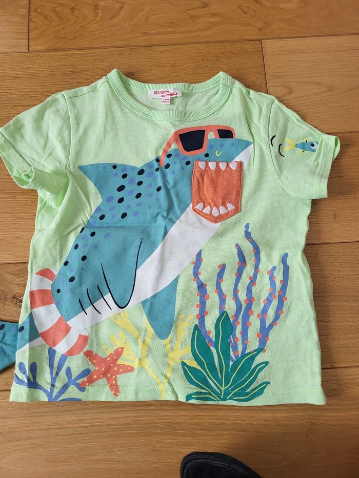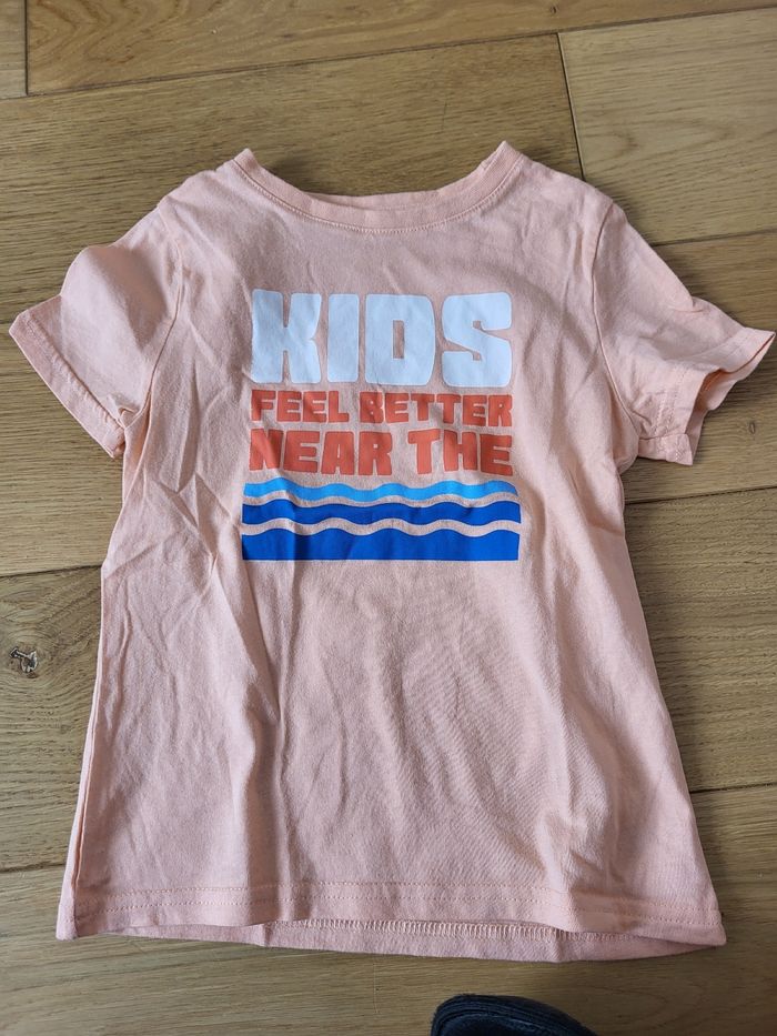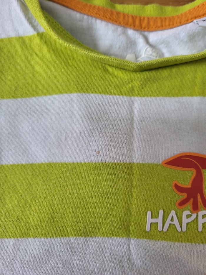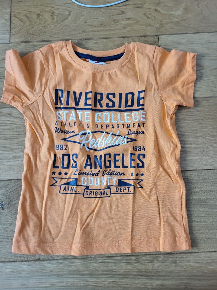 ⚠️bien lire l'annonce⚠️ Lot de 6 tee-shirts en très bon état, taille 4 ans. Les couleurs paraissent ternes mais en réalité elles ne le sont pas. Différentes marques. - T-shirt vert pâle avec requin, de DPAM. Parfait état. - T-shirt champion vert pomme. Parfait état - Orange flashy, Redskins. Toute petite tâche blanche au niveau de la couture. Quasi invisible - t-shirt Kiabi, couleur pêche. Très bon état - le gris est de Gémo. Un peu terne car beaucoup porté - le blanc et vert à rayures, de c&a est tâché mais n'a pas d'autres défauts
