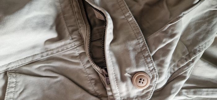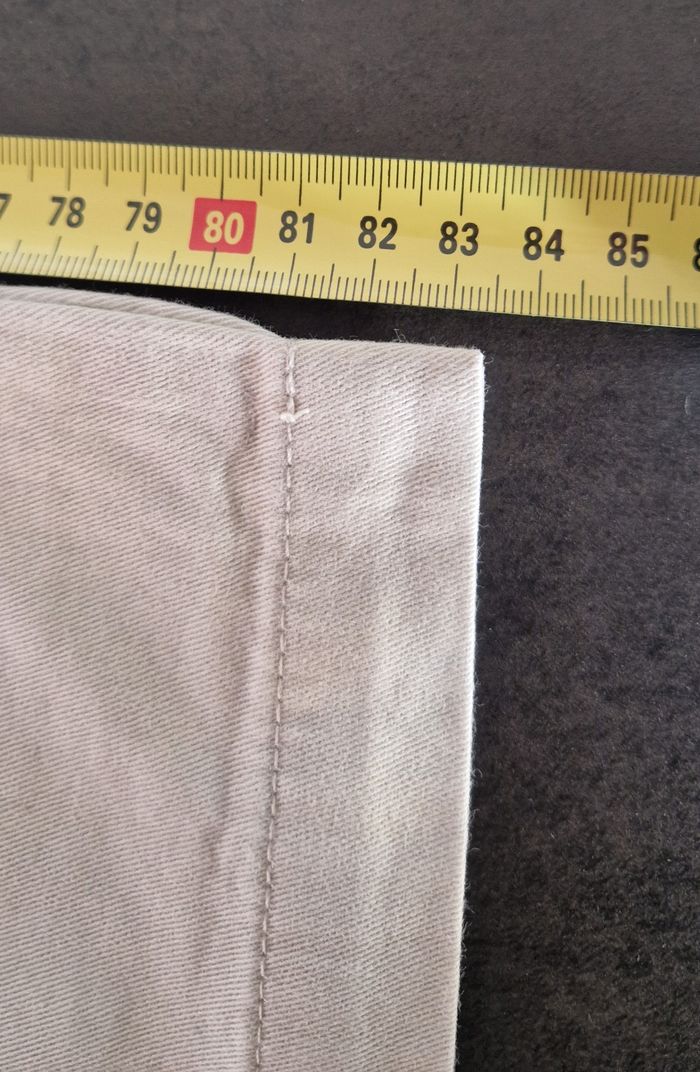 Pantalon cargo homme coloris crème en 100% coton, toucher très doux, fermeture à glissière + bouton, nombreuses poches zippées ou boutonnées - T.38 / M / mesure taille à plat 39,5 cm qui peut être légèrement resserrée grâce à des petites sangles sur les côtés - Mesure longueur entrejambe : 83,5 cm - longueur totale : 111 cm - Excellent état