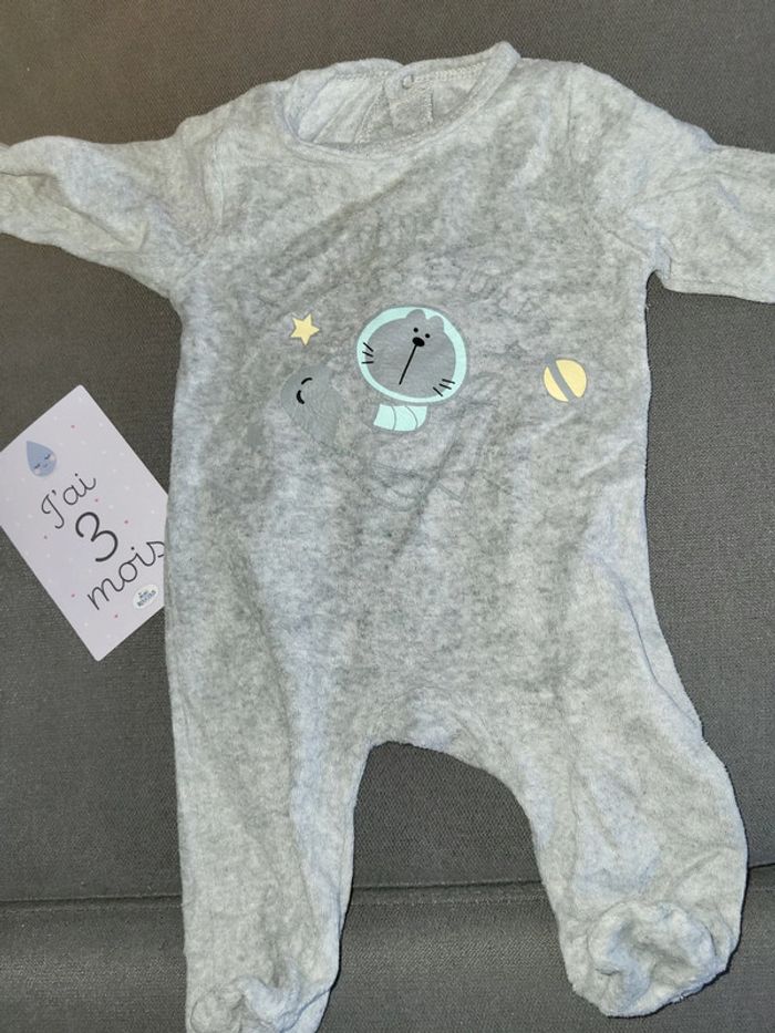 Pyjama gris chat "en route vers les étoiles" Taille 3 mois Très bon état Marque kimadi #magm_garcon_3mois #magm_fille_3mois #magm_mixte_3mois