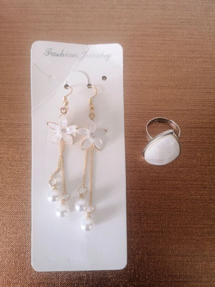 Bijoux neufs, jamais portés. #bijouxfantaisie #bijouxfemme #bouclesdoreillespendantes #bijouxété #bijouxboheme #bijouxblancs #bagueajustable #grossebague #baguenacre