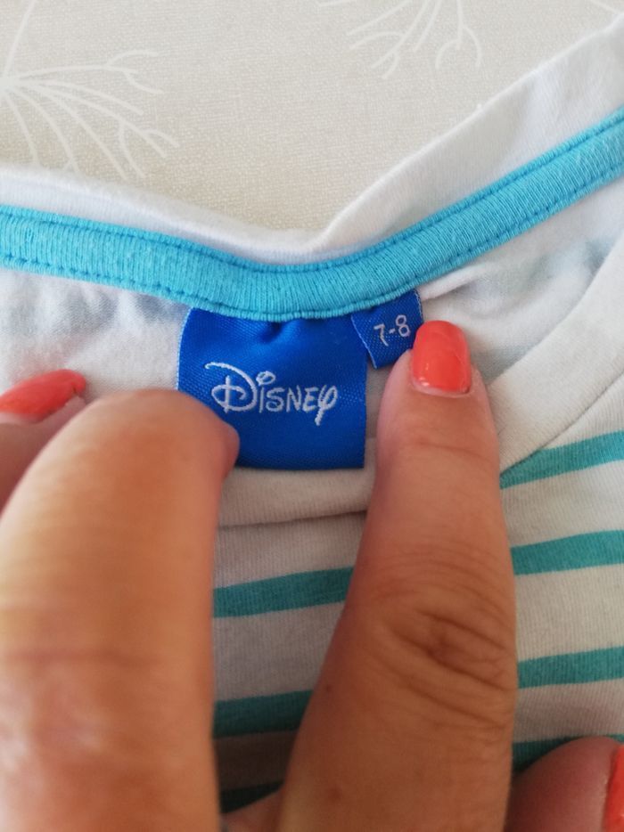 Tee shirt manches courtes rayé blanc/turquoise la reine des neiges  7/8 ans Disney - photo numéro 4