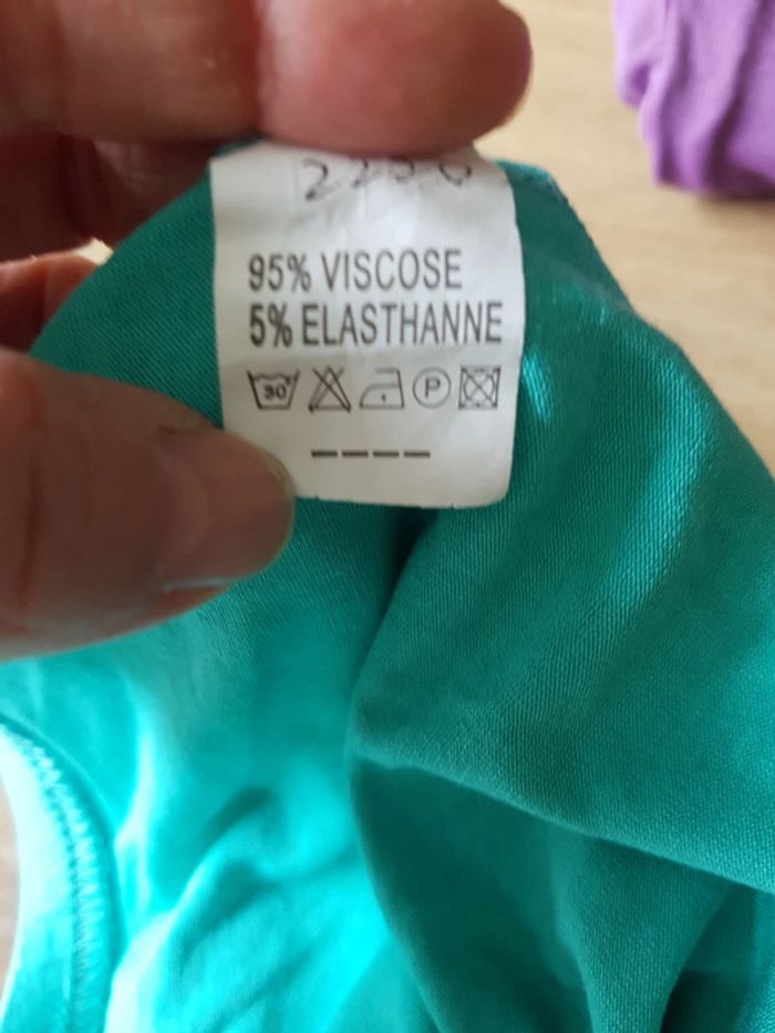 Lot de 2 leggings taille uniqu Sur le turquoise, un petit trou a été reprisé environ 5 cm au dessus du genou droit à l'intérieur de la cuisse, c'est très discret, voir photo