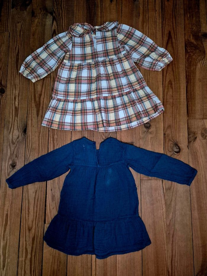 Lot de 2 robes demi saison pour fille. En taille 3 ans, 98 cm. En très bon état. Marques zara et mango. En gaze de coton.