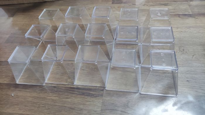 Lot de 15 verrines transparents en plastique . Parfait pour vos apéritifs , desserts, salades.. Ils sont en bonne état , propres et prêts à être utilisés, idéal pour un buffet ou une fête . N'hésitez pas à consulter mes autres annonces pour plus d'articles de cuisine.