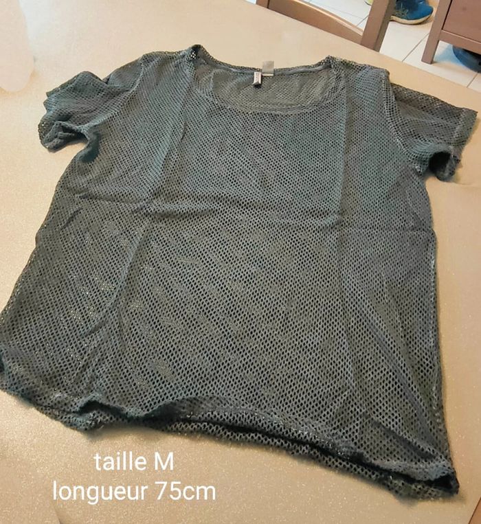 Long t-shirt filet A porter en robe, t-shirt, par dessus un maillot de bain... Couleur entre kaki et gris Jamais porté