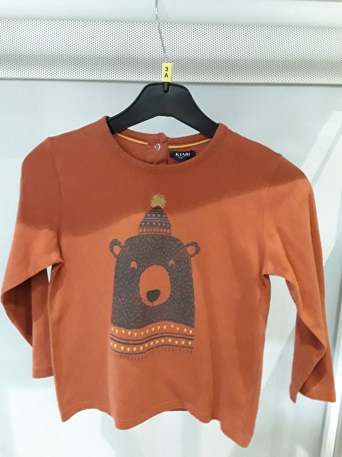 T-shirt manches longues, de marque Kiabi, en taille 3 ans, de couleur brique rouille, en très bon état