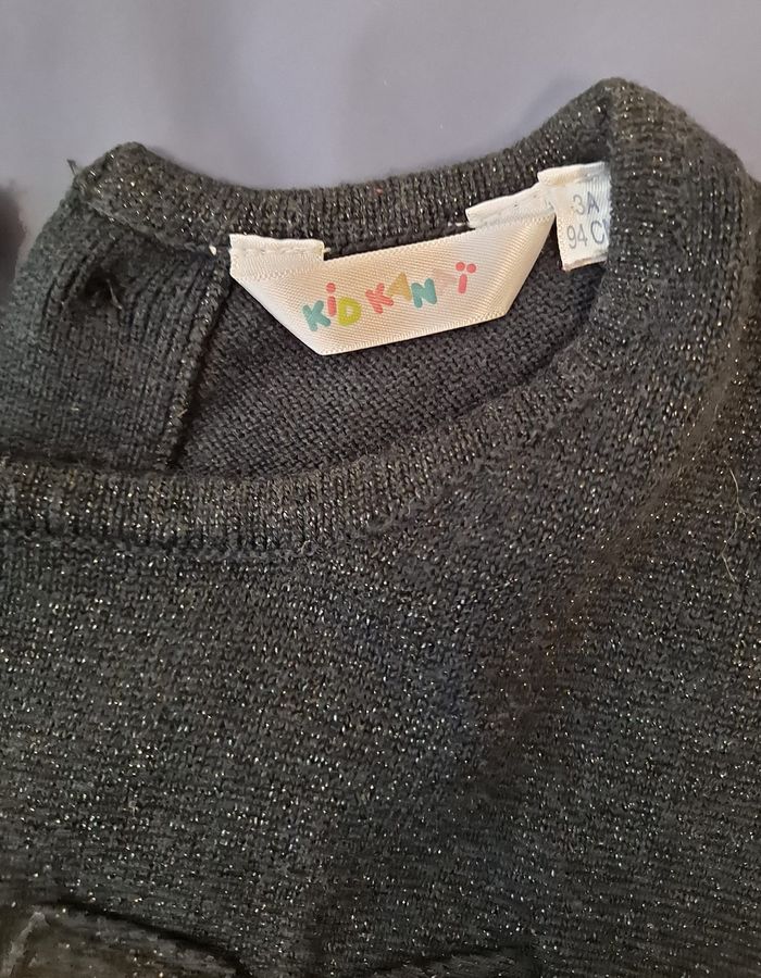 robe noire 3ans neuf sans étiquette tissu irisé fils argenté noeud kidkanai 3ans - photo numéro 1