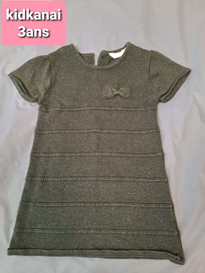 robe noire 3ans neuf sans étiquette tissu irisé fils argenté noeud kidkanai 3ans