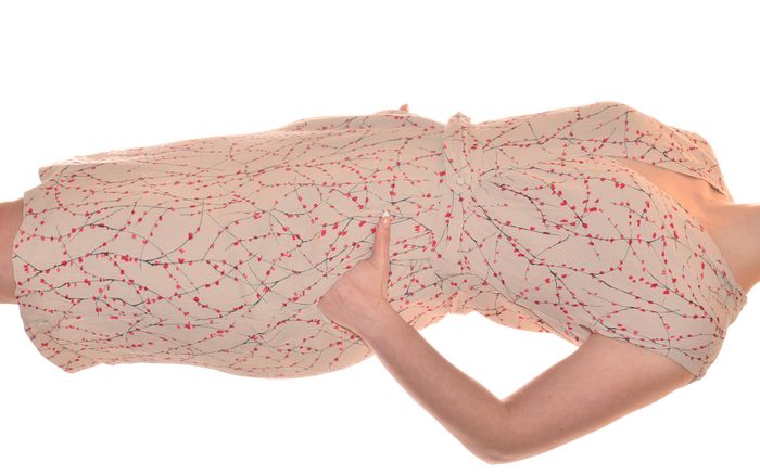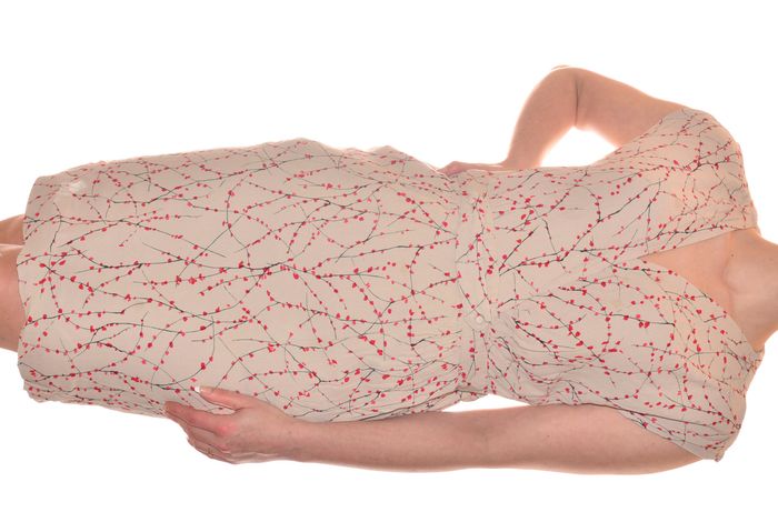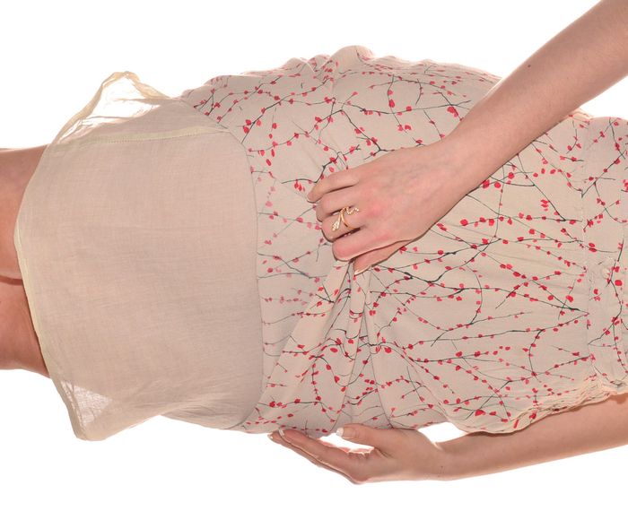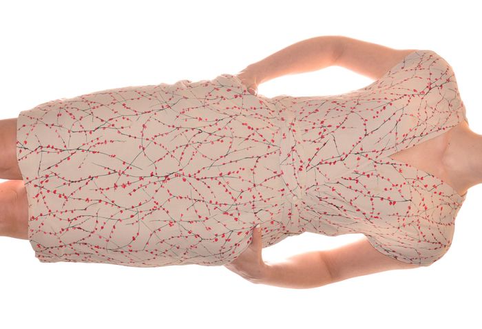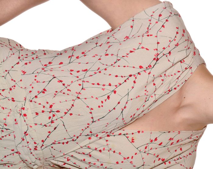 Robe casual élégante beige doublée à motifs rouge taille M col V - photo numéro 9