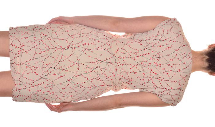 Robe casual élégante beige doublée à motifs rouge taille M col V - photo numéro 6