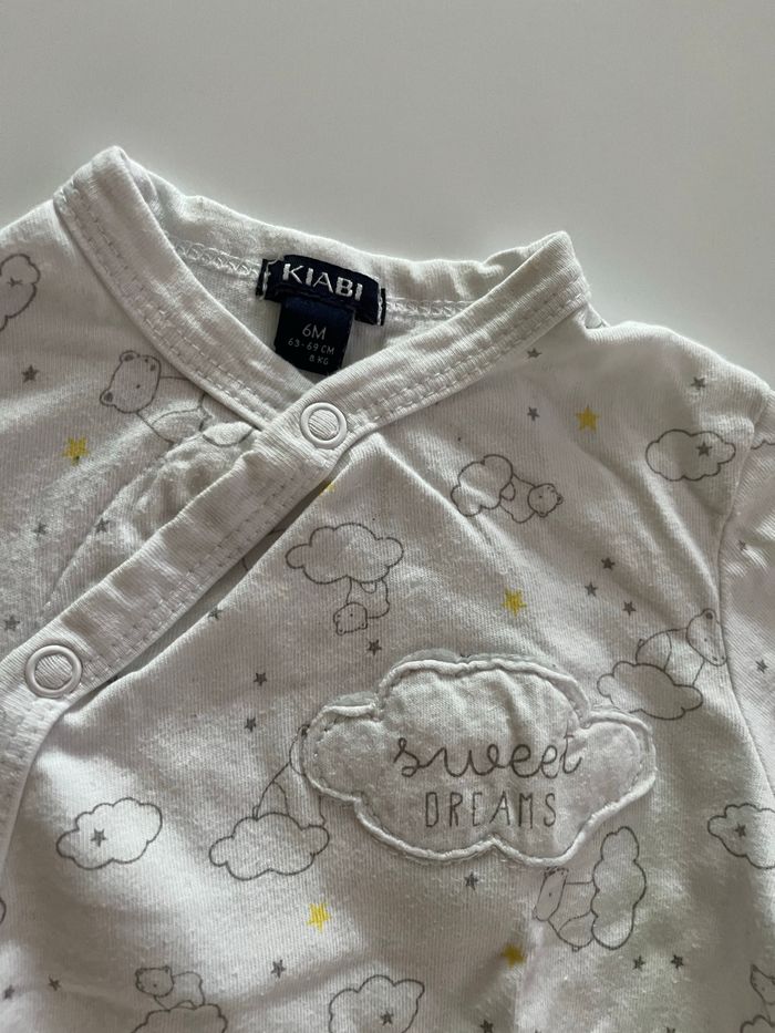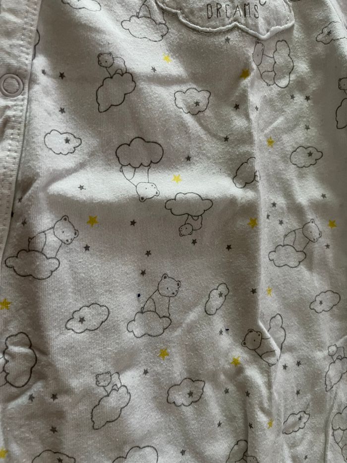 pyjama 1 pièce blanc motif d’ourson et de nuage gris clair très bon état marque kiabi taille 6 mois 63-69cm 8 kilos pour plus d’informations ou de photos n’hésitez pas à m’envoyer un message