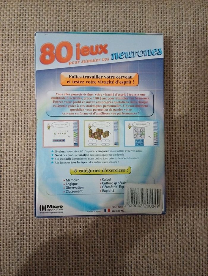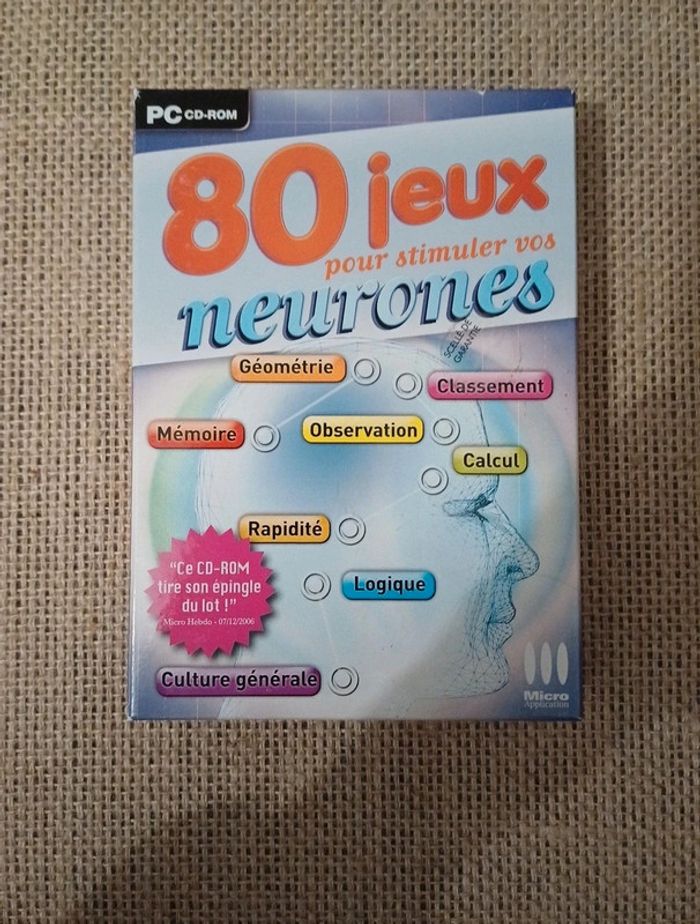 Jeu pc pour stimuler les neurones En très bon état Pour tout âge Informations complémentaires Accessoires de seconde main Envoi rapide ( le jour même ou lendemain) Sauf si point relais fermé le dimanche et lundi déposé le mardi. Différent mode de livraison Prix légèrement négociable En très bon état #17marilou_jeux_pc_ordinateur