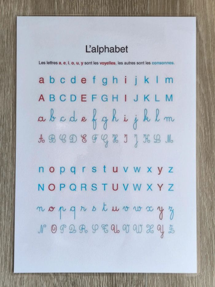 📍Sous mains abécédaire des consonnes et des voyelles. 📍Pour apprendre de façon ludique. 📍Format A4. 📍Papier 250G plastifié pour une bonne tenue ! 📍Neuf. 👉Pour trouver d'autres activités c'est par ici : 🔎#elisabethdesignAfficheA4 📫⏳ Envoi rapide et soigné le jour même de l'achat dans la mesure du possible! 🤝 Frais de port ajusté au plus bas.
