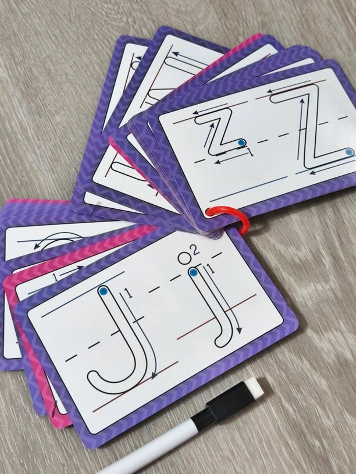 📍26 grandes cartes recto verso pour apprendre à tracer les lettres tout en s'amusant et apprendre des mots en anglais ! 📍Taille : 14 x 9,5 cm. 📍Effaçable à l'infini ! 📍Fourni avec le feutre. 📍Relié par un anneau facilement amovible. 📍Neuf. 👉Pour trouver d'autres activités c'est par ici : 🔎#elisabethdesignTracerEcriture 📫⏳ Envoi rapide et soigné le jour même de l'achat dans la mesure du possible! 🤝 Frais de port ajusté au plus bas.