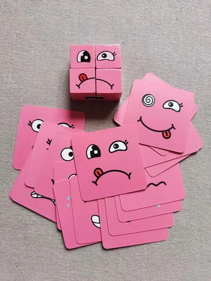 📍Jeu des émotions en bois. 📍18 figures à reproduire. 📍Neuf. 👉Pour trouver d'autres activités c'est par ici : 🔎#elisabethdesignEmotion 📫⏳ Envoi rapide et soigné le jour même de l'achat dans la mesure du possible! 🤝 Frais de port ajusté au plus bas.