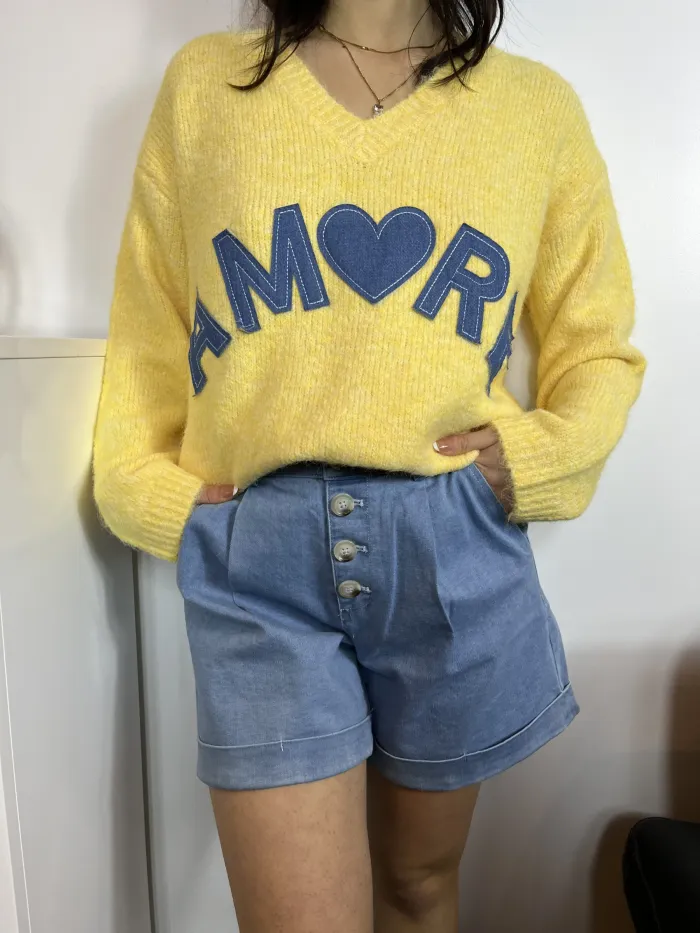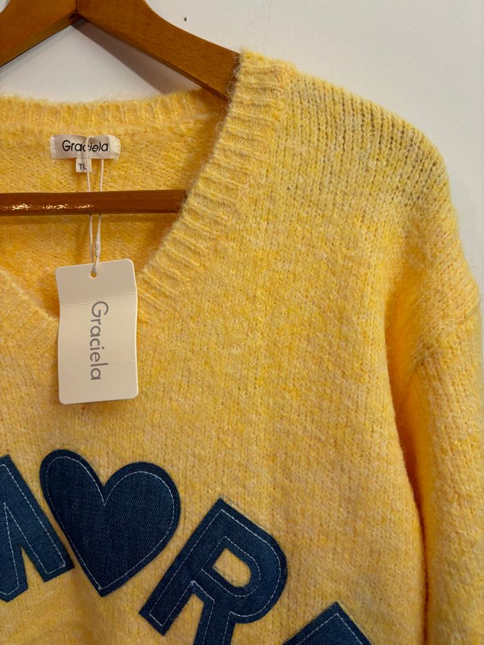 Bonjour ☺️ Craquez pour ce pull col V élégant et confortable, conçu dans une maille douce et agréable à porter. Son inscription "Amore" en jean apporte une touche moderne et pleine de charme, idéale pour une allure à la fois chic et décontractée. Avec sa coupe flatteuse, il se marie parfaitement avec un jean ou une jupe pour un look tendance et sophistiqué. ✔️ Correspondance 36-42 ✔️ Coupe fluide et féminine ✔️ Composition : Élasthanne 2% – Laine 10% – Polyamide 20% – Polyester recyclé 68% ✔️ Collection : Printemps/Été 2025 ✔️ Neuf ✨ Un incontournable pour allier style et confort au quotidien ! ✨ Collection 2025 A très vite !