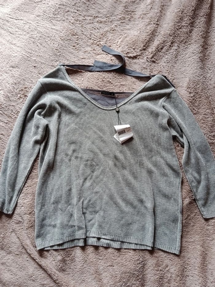 🩵 Joli pull gris neuf avec étiquette 🩵 Gris pailleté avec joli détail transparent dans le dos 🩵 Neuf avec étiquette mais petit défaut (voir photo) #astheniefemme46 #astheniefemmexxl #femmexxl #femme46