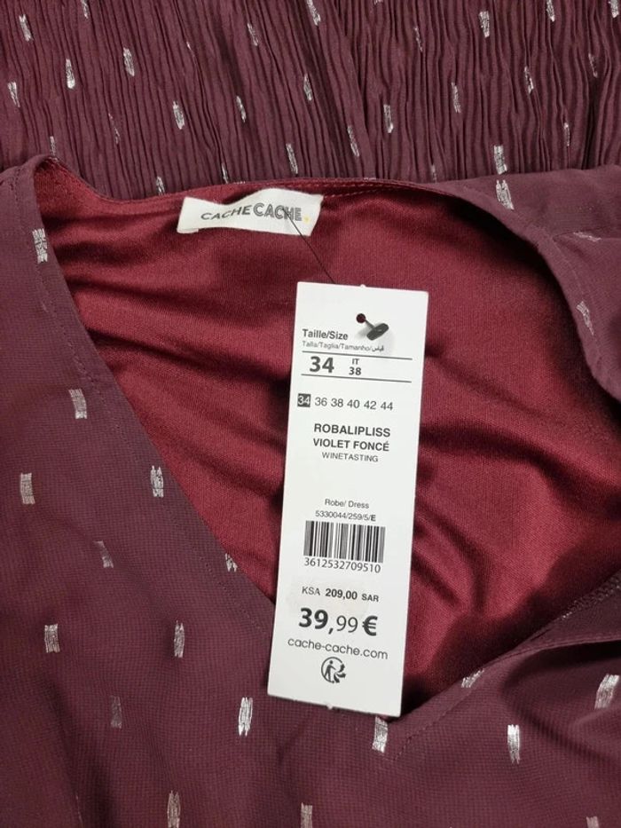 Cache Cache Belle robe violet foncé Taille 34 (XS) NEUF avec étiquette (39,99 €) Jupe à plis Ne nécessite pas de repassage Entièrement doublée 100% polyester Longueur: 93 cm Aisselle à aisselle: 46 cm Taille élastiquée #cachecache #robechic34 ADN.202