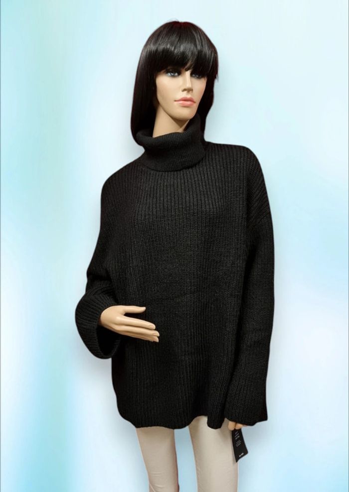 NA-KD Pull col roulé long en maille Noir Taille S Neuf avec étiquette Vendu 39,95 € ⚠️ N'hésitez pas à me demander des photos du vêtement porté par le mannequin du site Ce pull a un tricot doux épais et élastique et une coupe oversize décontractée. Il a un long col roulé à nervures et des manches longues larges 84% acrylique, 10% polyamide, 6% polyester Longueur: 67 cm Aisselle à aisselle: 65 cm #nakd #pullcolroulenoir #pulloversize ADN.241