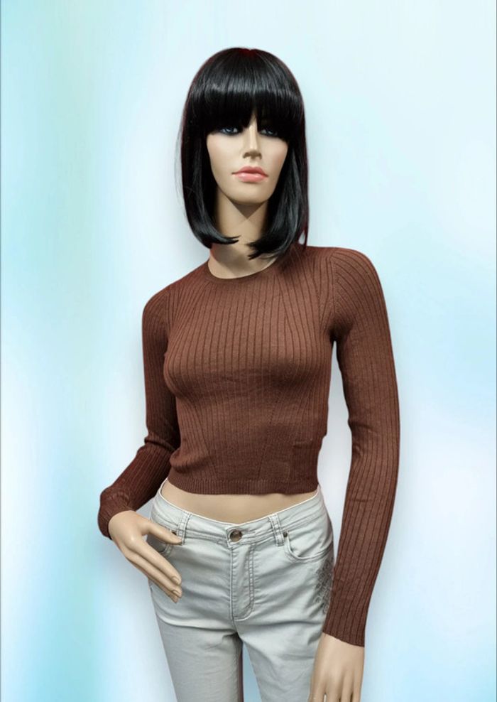 Jennyfer pull fin crop top court marron * taille L * - photo numéro 2