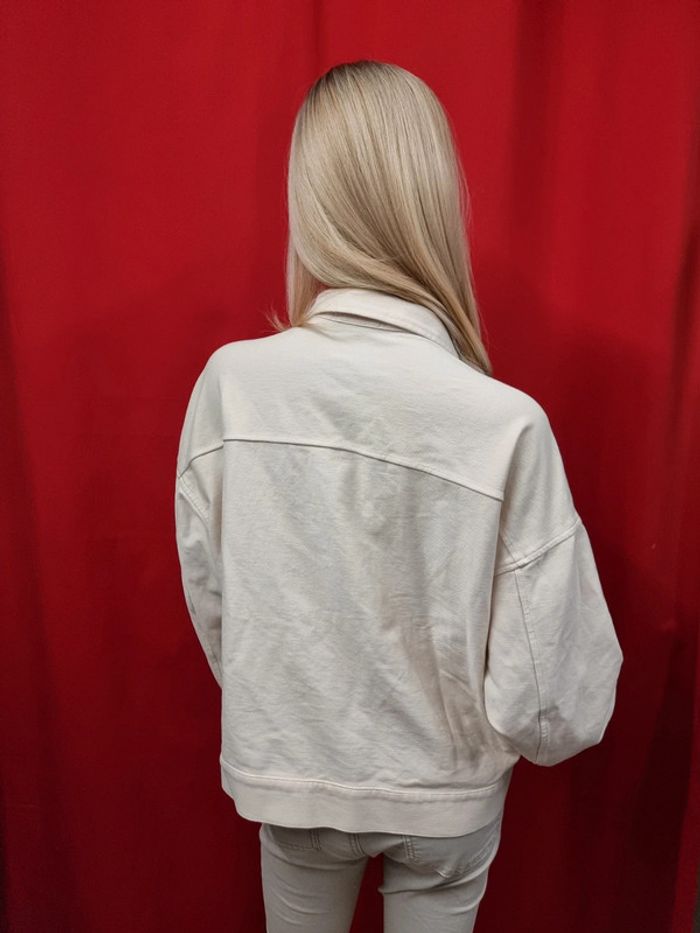 Uniqlo Blouson veste souple oversize Taille M Matières très douce Parfait état Longueur : 57 cm Aisselle à aisselle : 60 cm Épaule à épaule : 57 cm 2 poches 95% coton 5% elasthanne #blousonbeige #vestefemmebeige #uniqlo Balsan.43
