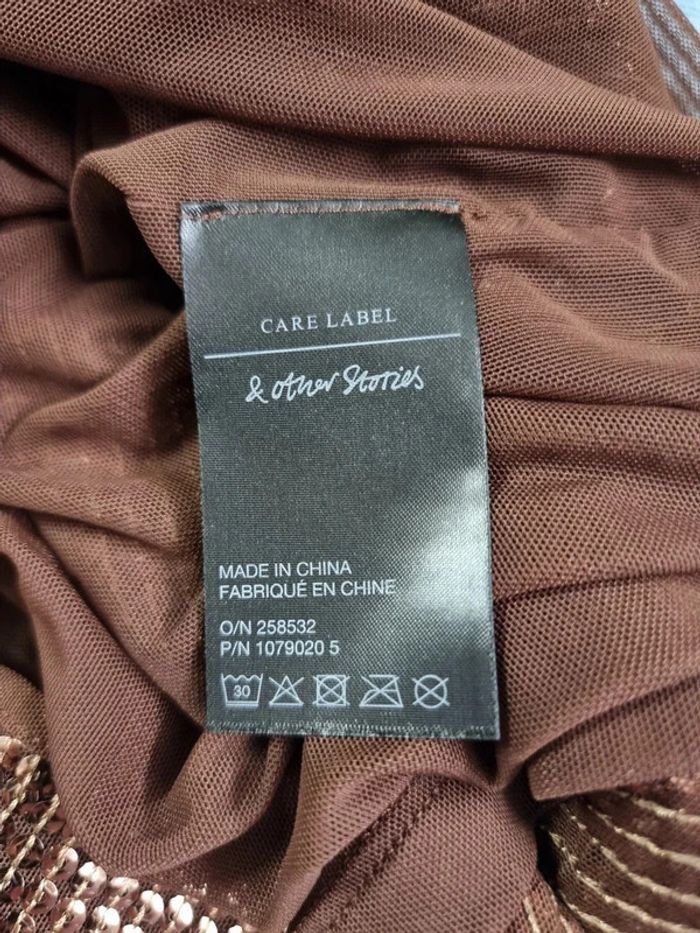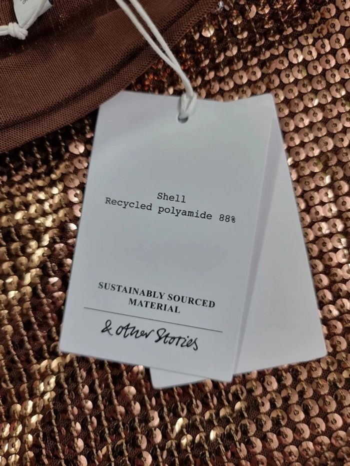 & Other Stories Jupe crayon midi à sequins Marron brillant Taille 36 Neuve avec étiquette (99 €) Jupe crayon midi en jersey extensible. Dotée d’une silhouette droite ornée de sequins brillants Polyamide 88 %, Élasthanne 12 % Longueur: 67 cm Élastique à la taille #&otherstories #jupecrayon #marron #sequins ADN.28