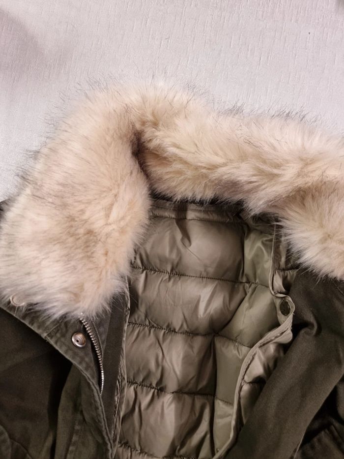 Mango Blouson 2 en 1 (Doublure intérieur et col amovibles) Taille XS (convient aussi pour une taille S) Parfait état Acheté 99€ en boutique Longueur : 60 cm Aisselle à aisselle : 59 cm #mango #blousonkaki #blousonhiver Balsan.43