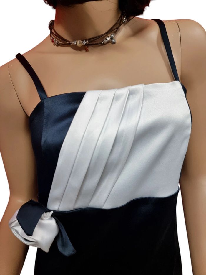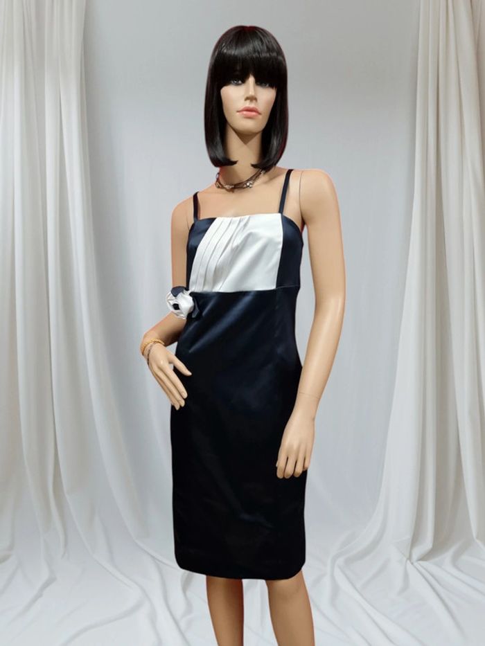 DUNNA Joli robe de soirée, cocktail, fêtes... Taille 42 Bleu marine et blanc Tissu satiné Parfait état Fermeture au dos par glissière invisible doublée Longueur: 100 cm Aisselle à aisselle: 40 cm #robesoiree42 #robebustier42 #robecocktail PB.1