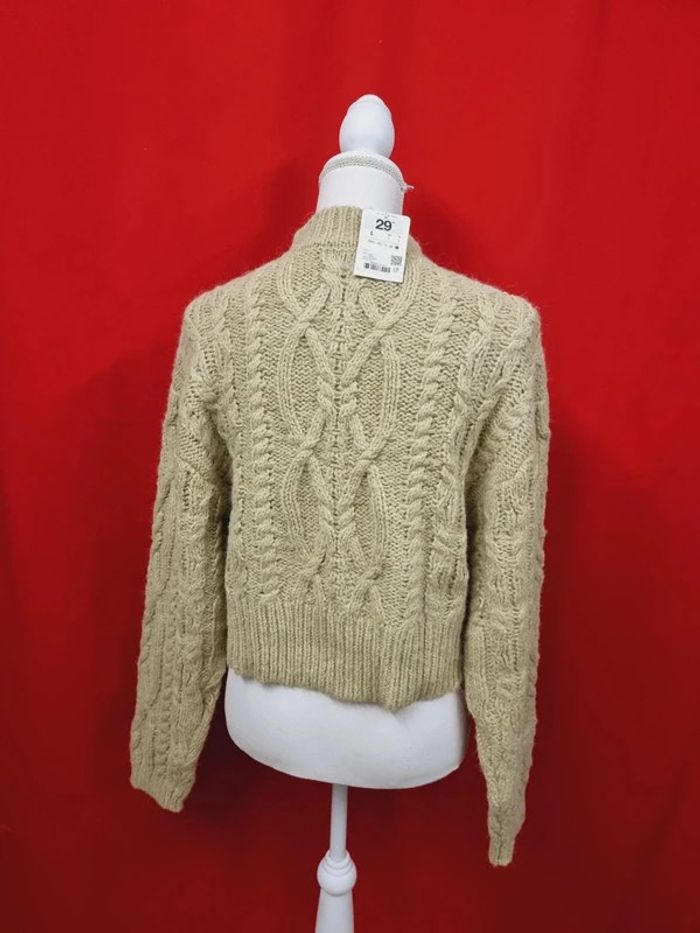 Jennyfer pull vert maille torsadée col montant * taille L * - photo numéro 3
