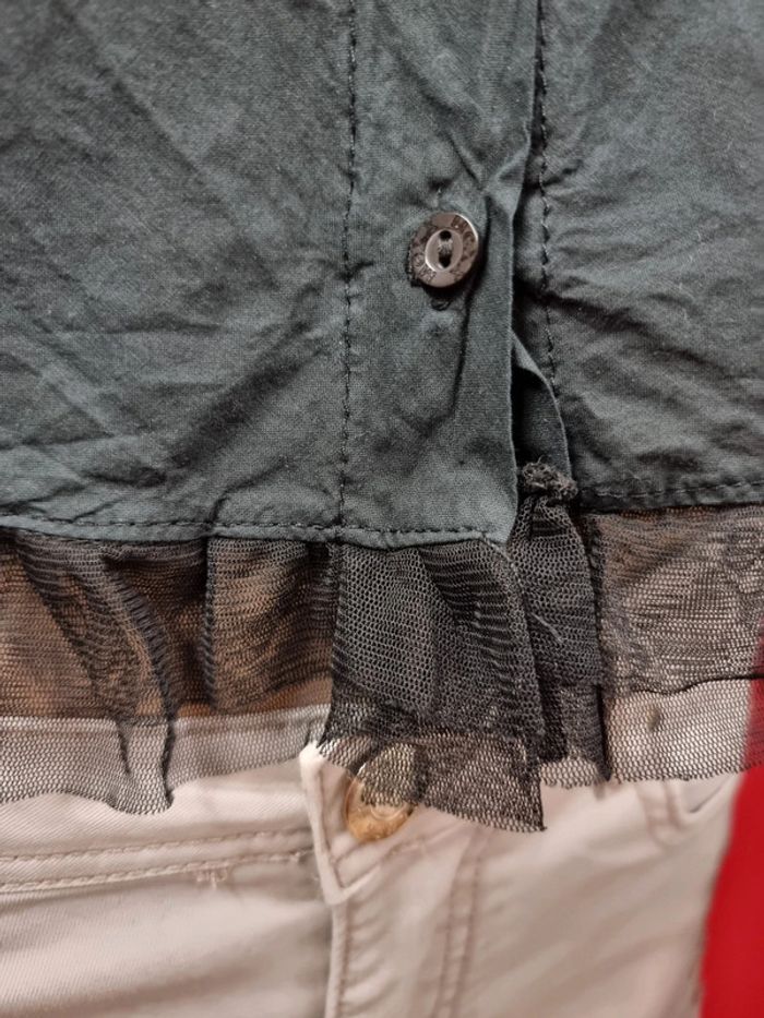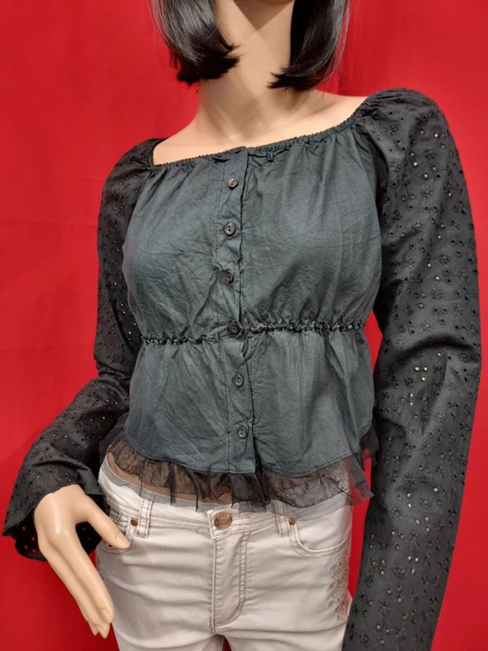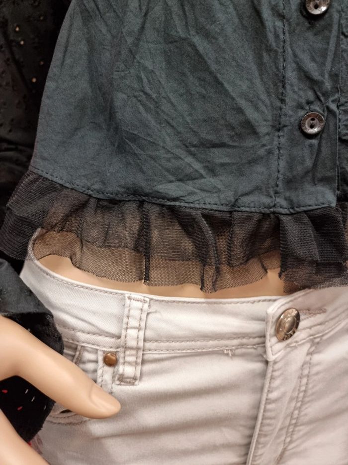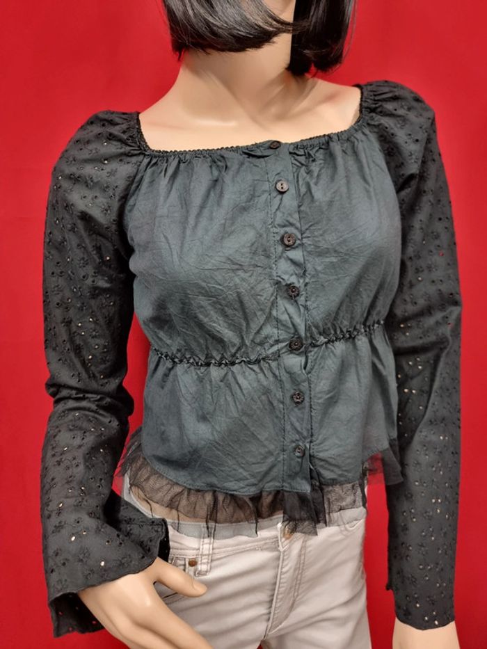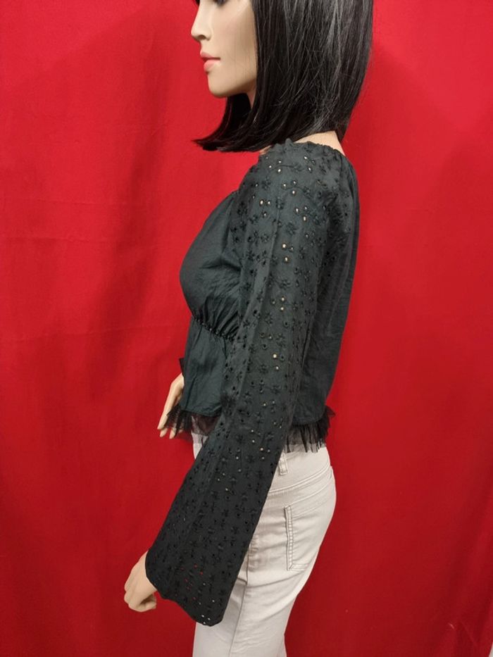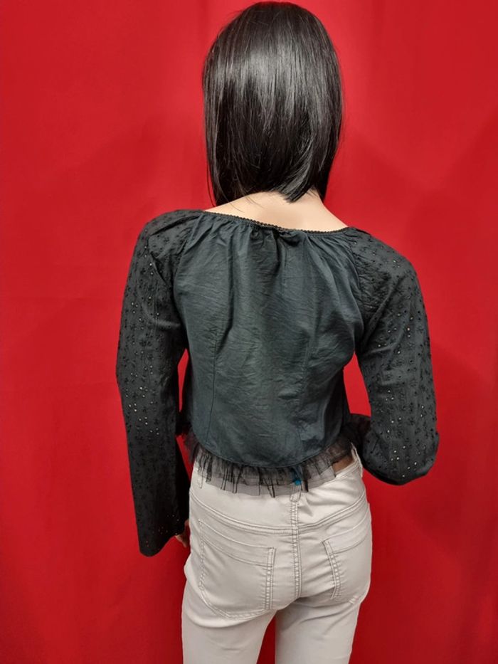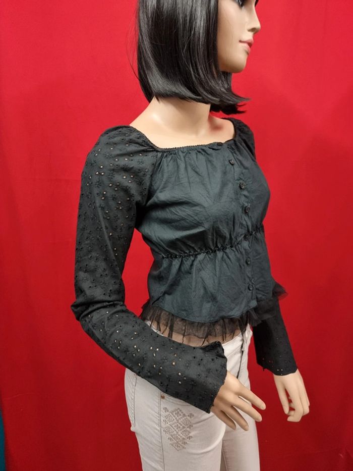 MEXX Haut court crop top manches longues Noir Taille 36 Voile sur le bas Fermeture par boutons devant Parfait état Longueur: 44 cm Aisselle à aisselle: 44 cm 100% coton #mexx #croptopnoir PB.1