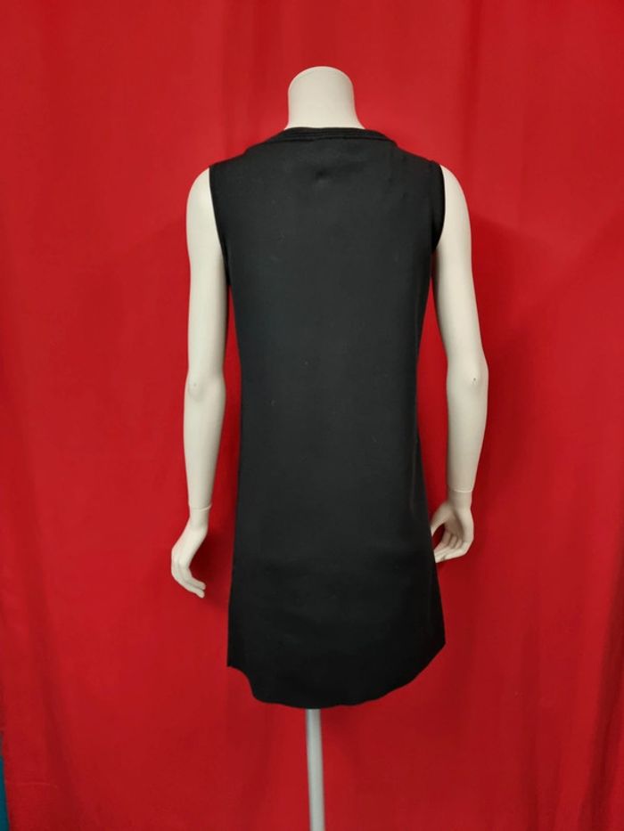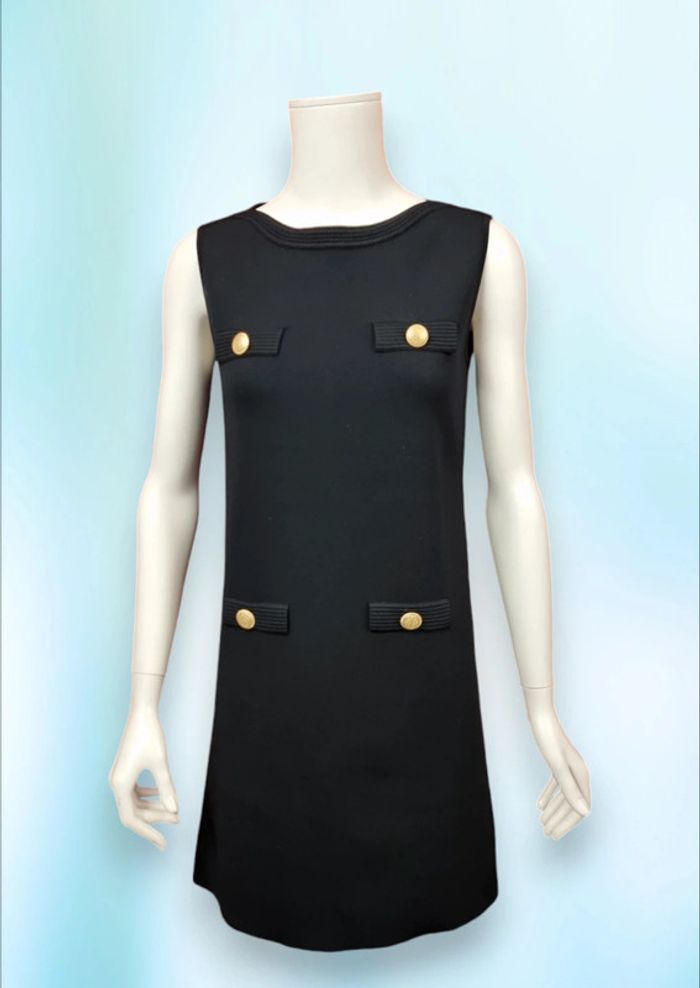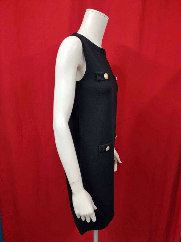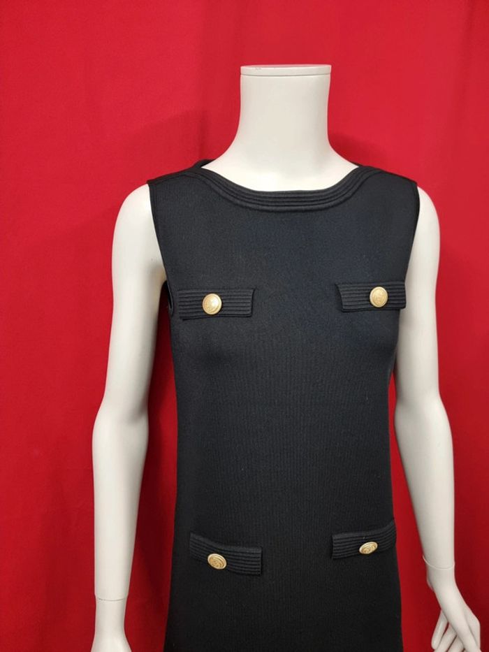 Maison 123 Superbe robe noire sans manches Modèle Brook (hiver) - style vintage Boutons embossés devant Taille M Neuve avec étiquette Très belle qualité 65% viscose 35% polyamide Longueur: 88 cm Aisselle à aisselle: 43 cm #maison123 #robenoire3840 ADN.