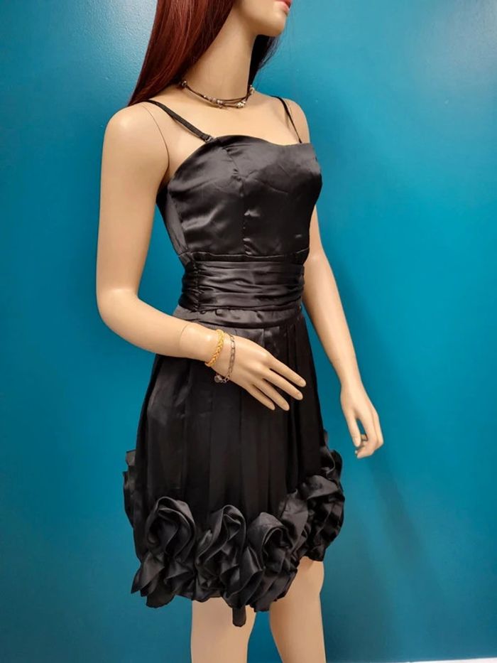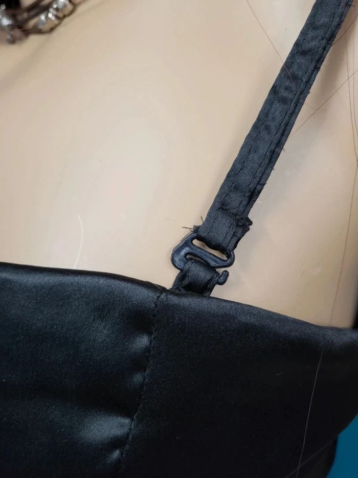 Jolie robe noire satinée Idéale fêtes Taille 36 Parfait état Longueur: 74 cm (du haut du bustier jusqu'en bas) Taille poitrine à plat: 38 cm Peux se porter avec ou sans bretelles Système anti glisse Très élégante #robenoire36 #robecocktail #robefetes C.C.325