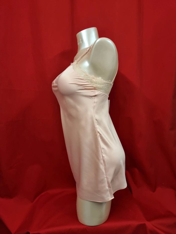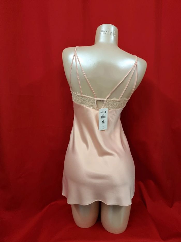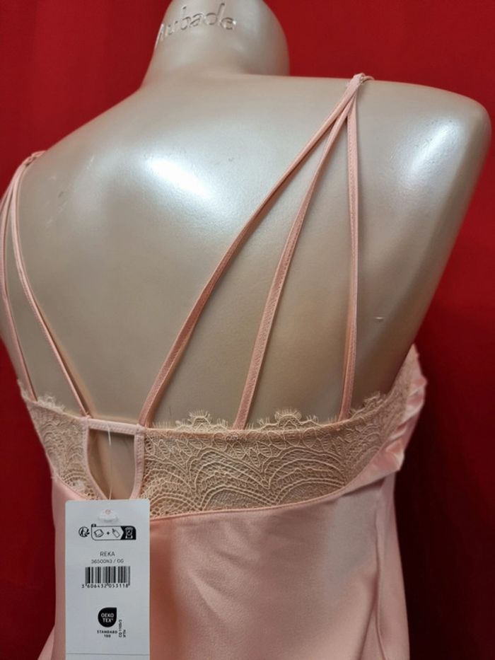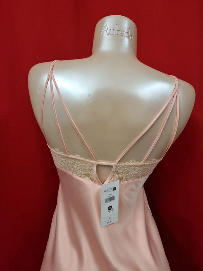 DARJEELING Nuisette satin couleur pêche Taille 36 Neuve avec étiquette (vendu 50 €) Nuisette en satin de polyester Longueur: 80 cm - Jeu de liens sur le décolleté et dans le dos pour un look raffiné - Détails dentelle sur le décolleté - Bretelles réglables Satin : 100% polyester - dentelle : 85% polyamide / 15% élasthanne #nuisette36 #darjeeling ADN.138