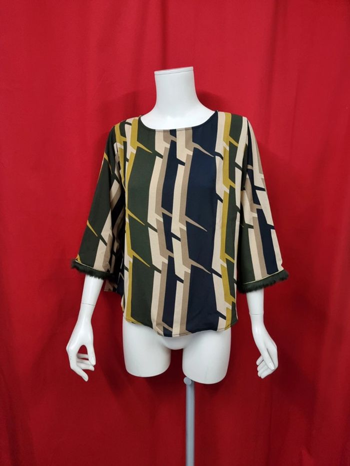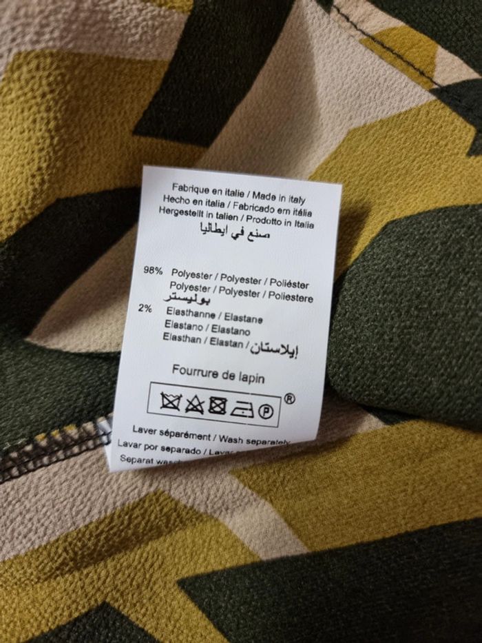 La Fée Maraboutée Superbe blouse imprimé graphique ton vert T38 (également disponible en tailles 36 - 40 - 42) Neuve avec étiquette (115 €) La coupe ultra ample est moderne et confortable. Le tissu crêpe est également dans la tendance. Sous l'empiècement dos, cette blouse se compose de deux pans croisés, arrondis à la base de la fente recouverte. 98 % Polyester 2 % Elasthanne Mesures détaillées : Aisselle à aisselle : 56 cm Hauteur : 59 cm Longueur manches : 41 cm #lafeemaraboutee #blouse38