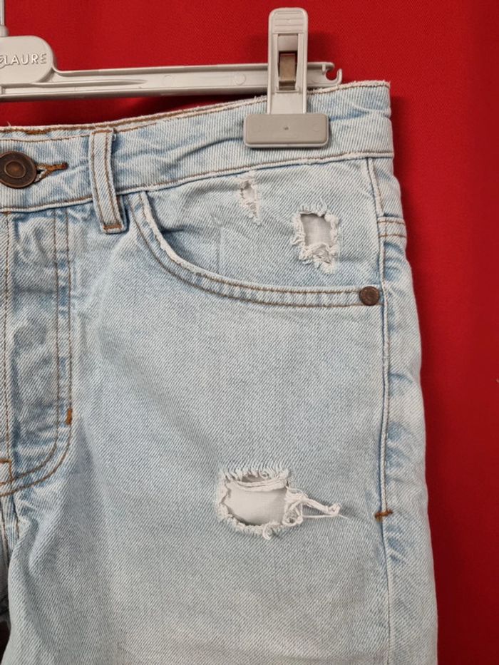 Bizzbee Bermuda homme Taille 36 Bleu clair avec trous et franges Fermeture par boutons Parfait état Taille à plat: 39 cm Longueur: 40 cm 100% coton #bzb #bizzbee #bermudahomme36 ADN.79