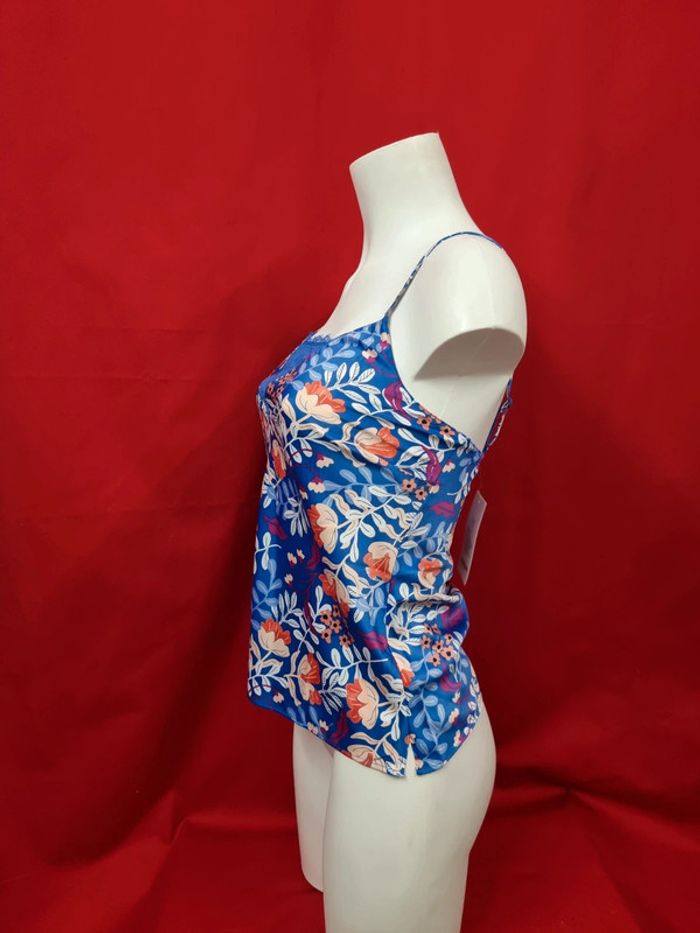 Darjeeling Caraco bleu fleurs Collection Emilie Taille 36 Neuf avec étiquette (vendu 30 €) Caraco en satin de polyester : - A porter aussi le jour sous vos vestes ou top transparent - Satin brillant pour un rendu des plus raffinés - Décolleté habillé d'une fine dentelle - Goutte au dos avec bouton nacre - Fines bretelles réglables Satin : 100% Polyester Dentelle : 85% Polyamide 15% Élasthanne #darjeeling #caraco #top #lingerie ADN.135