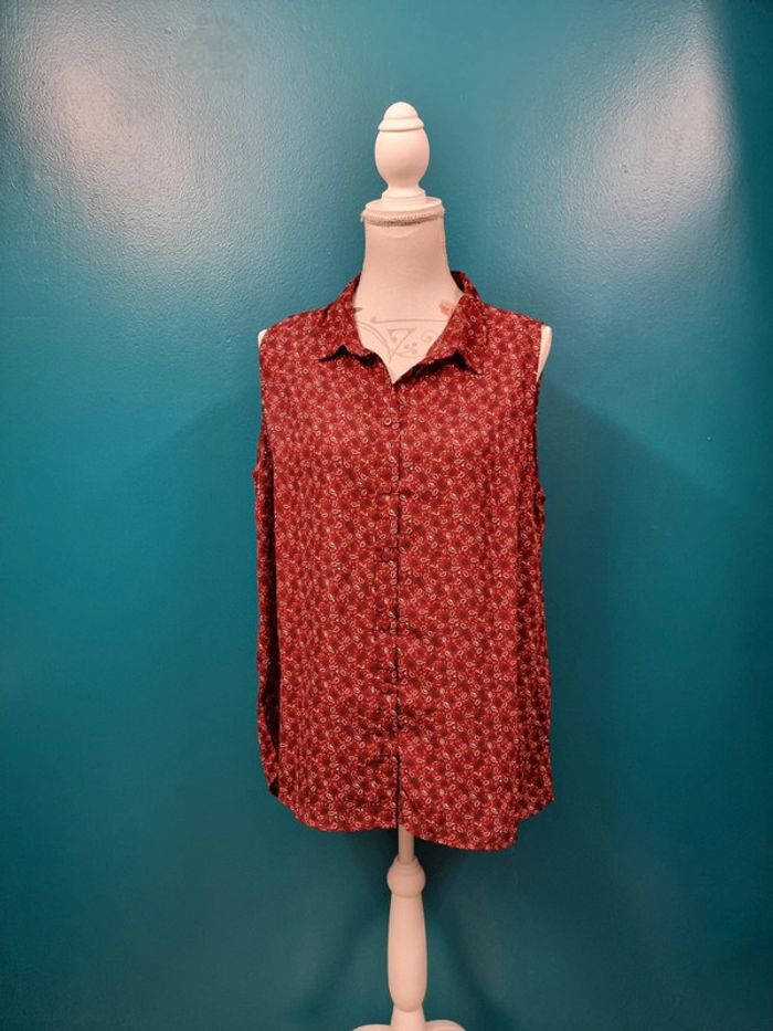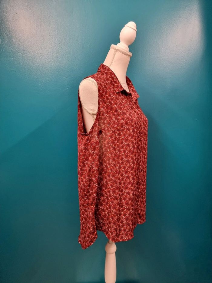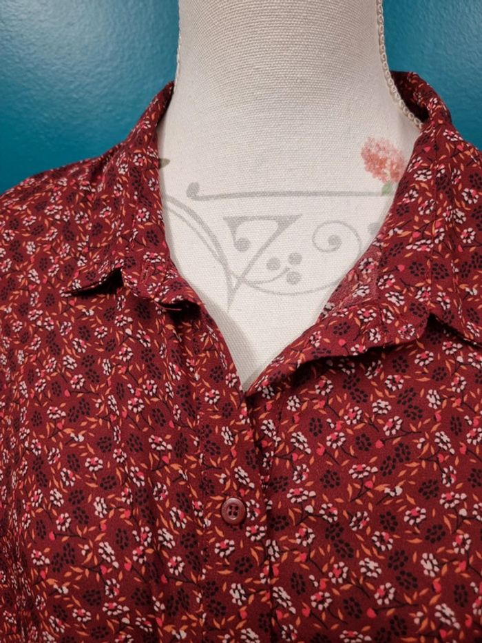Blouse tunique bordeaux fleurs * T44 *