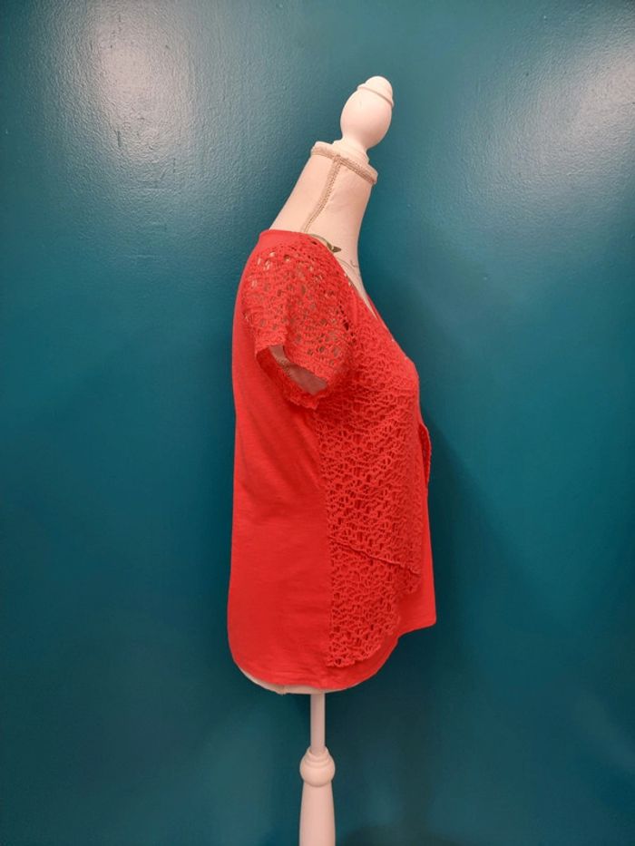 Armand Thiery Blouse corail dentelle devant Taille 2 Parfait état 50% coton 50% viscose Longueur: 61 cm Taille poitrine à plat: 44 cm #armandthiery #blousecorail PB.1