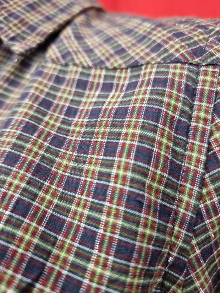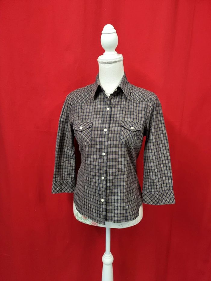 Levi's Très belle chemise Ton mauve et vert + fils métalliques argentés Taille S Parfait état Coupe cintrée 99% coton 1% métallique Longueur: 60 cm Taille poitrine à plat: 46 cm Carrure (épaule à épaule): 38 cm #levis #chemisefemme EMMA.5