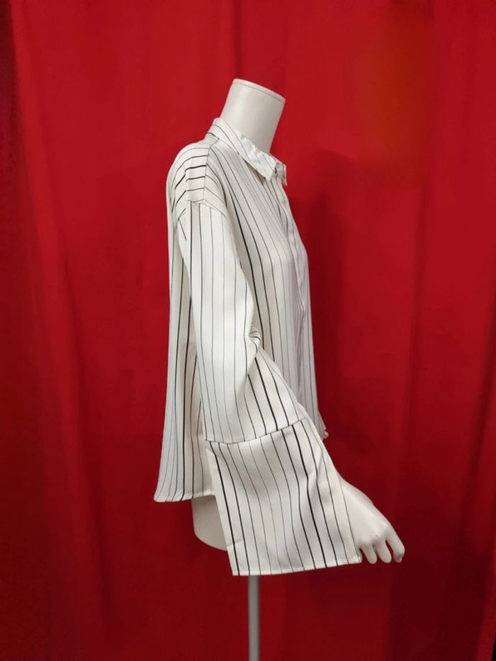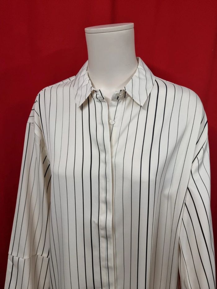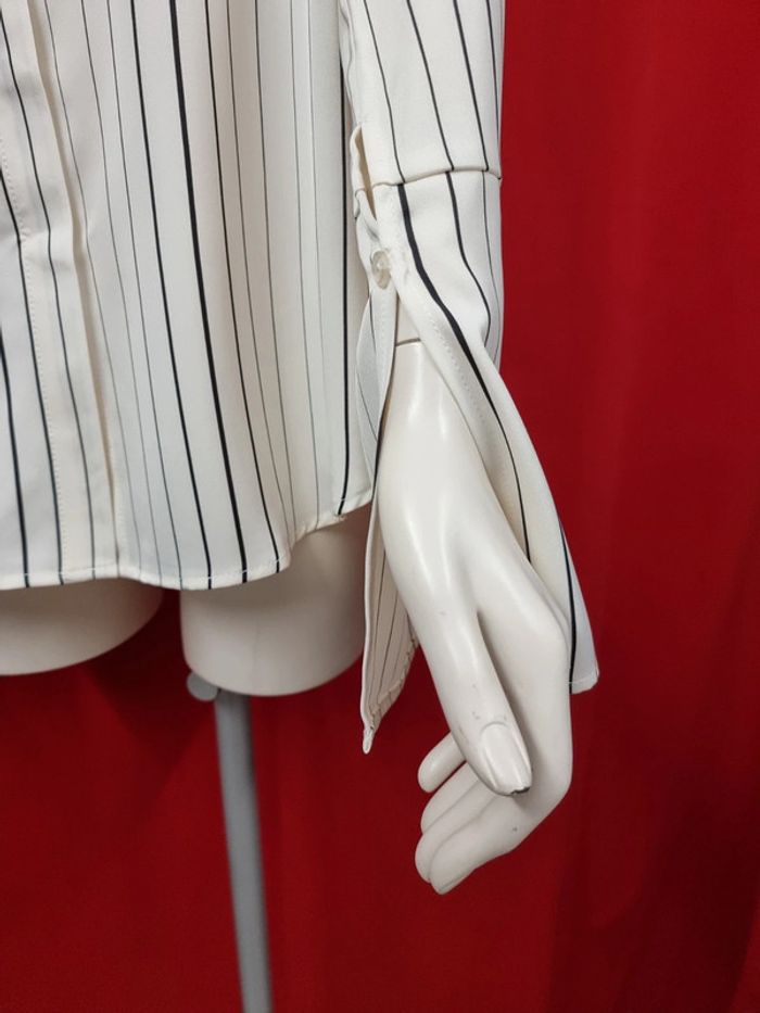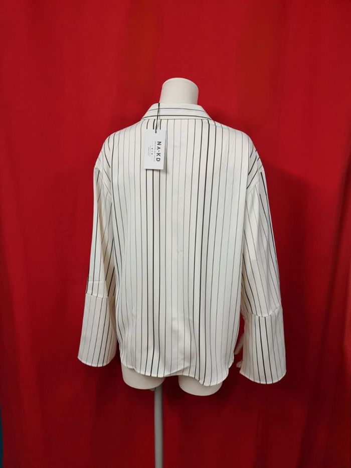 HANDPICKED & NA-KD Chemise en satin à manchettes larges Coupe oversize (surdimensionné) Taille 36 (taille très grand, oversize) Crème à rayures NEUF avec étiquette (44,95 €) 🛍️ N'hésitez pas à me demander des photos du vêtement porté par le mannequin du site Cette chemise a des manches longues larges, un col classique, des boutons de fermeture, un bouton autour des poignets et une coupe oversize. Code article: 1736-000085-1173 92% polyester, 8% élasthanne Longueur: 70 cm Taille poitrine à plat: 58 cm #NAKD #chemiseoversize ADN.392