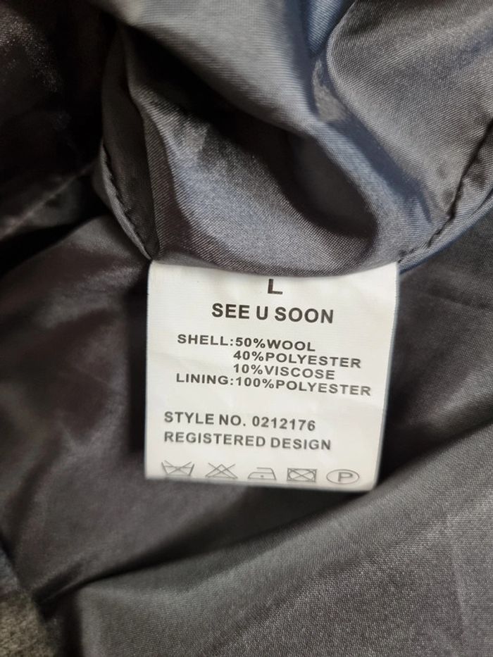 See U Soon Robe hiver grise 2 en 1 Taille L Utilisation en robe ou tunique en retirant la partie du bas (avec fermeture éclair) Entièrement doublée 50% laine 40% polyester 10% viscose Doublure: 100% polyester Longueur robe: 93 cm Taille poitrine à plat: 50 cm #seeusoon #robegrise42 #robehiver P.B.1