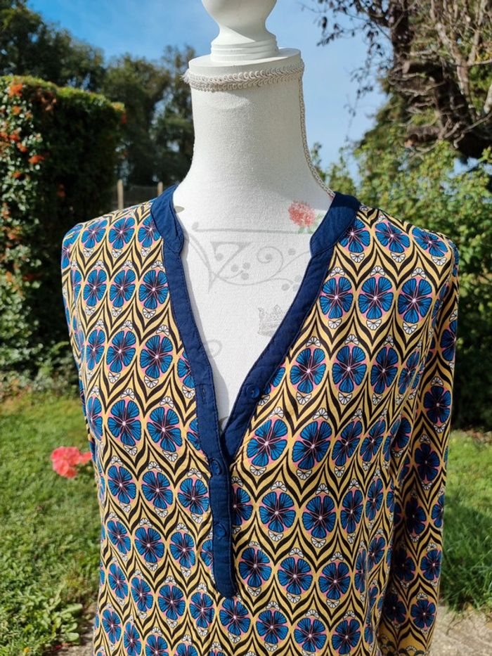 SJ Paris blouse bleu moutarde * taille M * - photo numéro 2