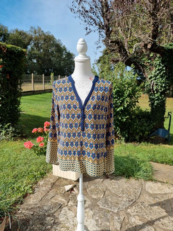 SJ Paris blouse bleu moutarde * taille M * - photo numéro 1