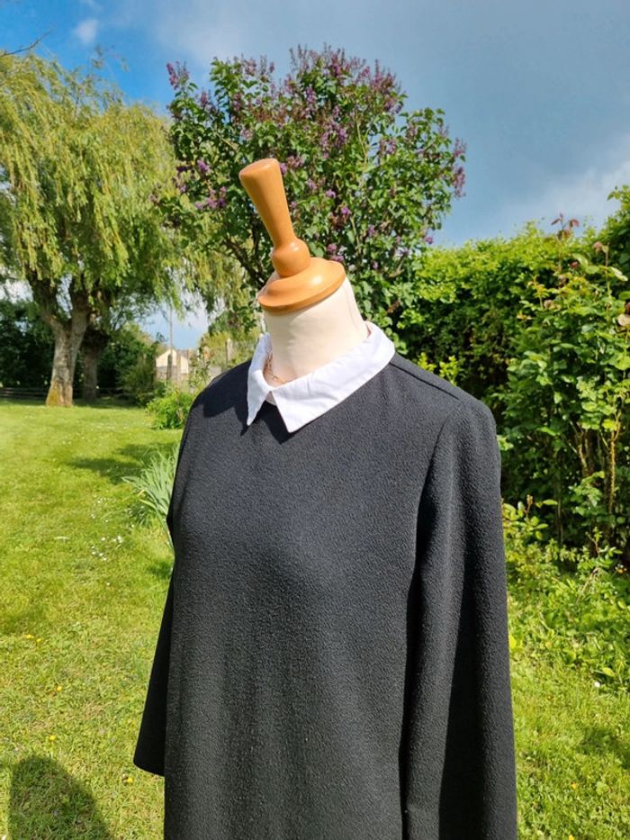 Zara Trafaluc Robe noire Taille 38 Effet col chemise Parfait état Longueur: 88 cm Taille poitrine à plat: 48 cm Tissu extensible ne nécessitant pas de repassage #zara #robenoire38 ADN68