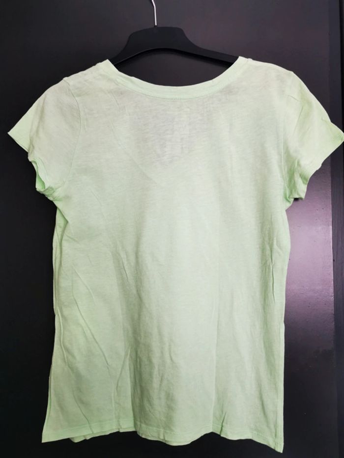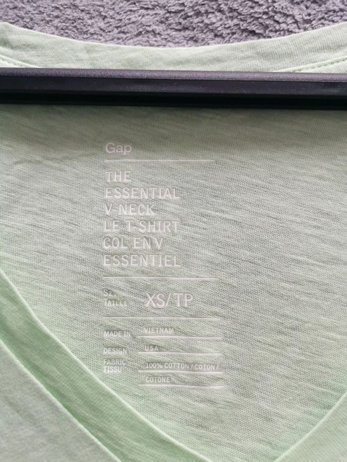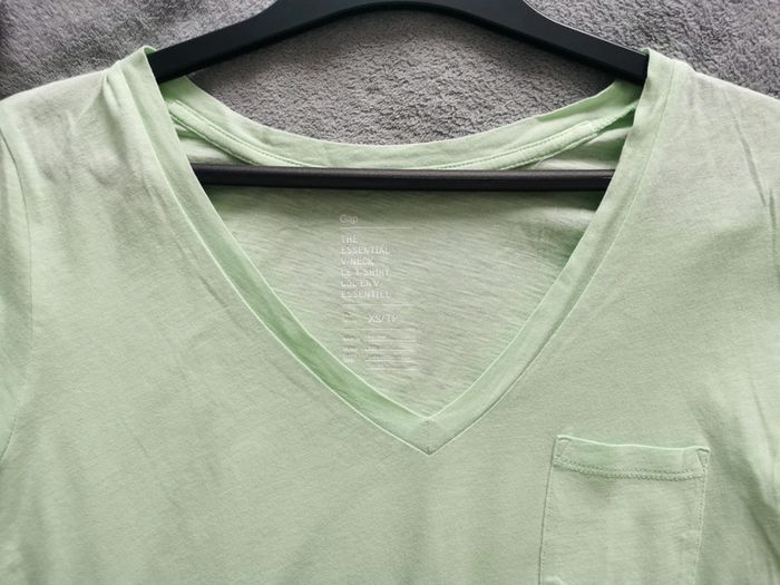 T-shirt Gap couleur vert pomme pastel, col en V, taille XS oversized, tissus fin, très bon état.