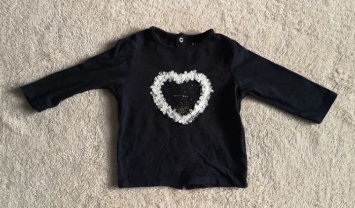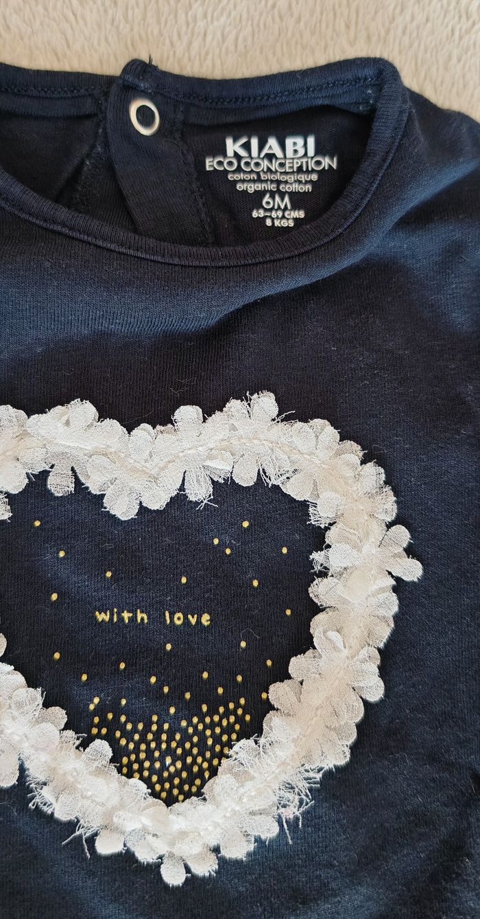 Tee-shirt noir avec cœur blanc Taille 6 mois / 63-69 cm Marque Kiabi