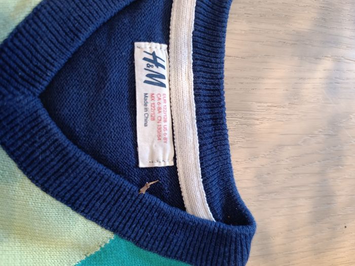 Pull Col V Garçon Bleu avec Jacquard devant 6-8 zns/122-128 cm H&M Très Bon État