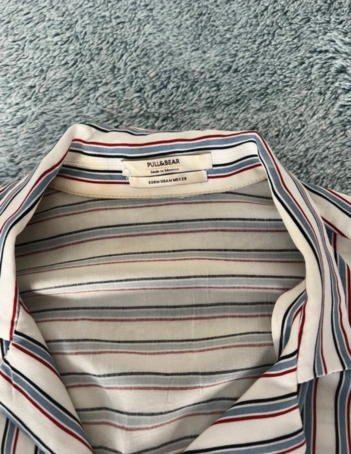 Chemise rayée bleue blanche et rouge Manche 3/4 Taille M Bon état (col un peu jaunit sur l’intérieur)