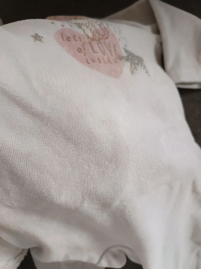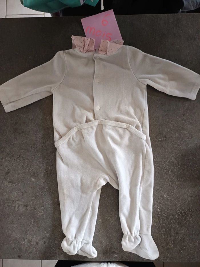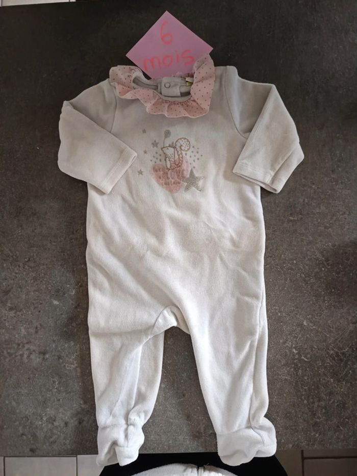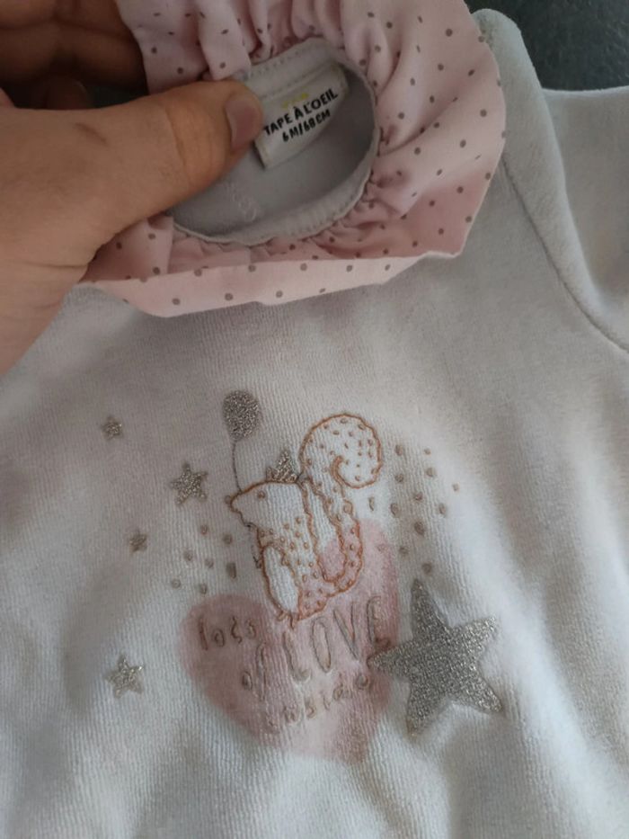 Pyjama en velours, Gris à col rose motif écureuil Bon état, petite tache (voir 2eme photo) Taille 6 mois #vetementbebefille6moisjustine182129