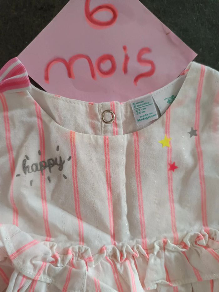 Jolie Robe été Minnie blanche et fluo, NEUVE jamais portée ! Taille 6 mois #vetementbebefille6moisjustine182129